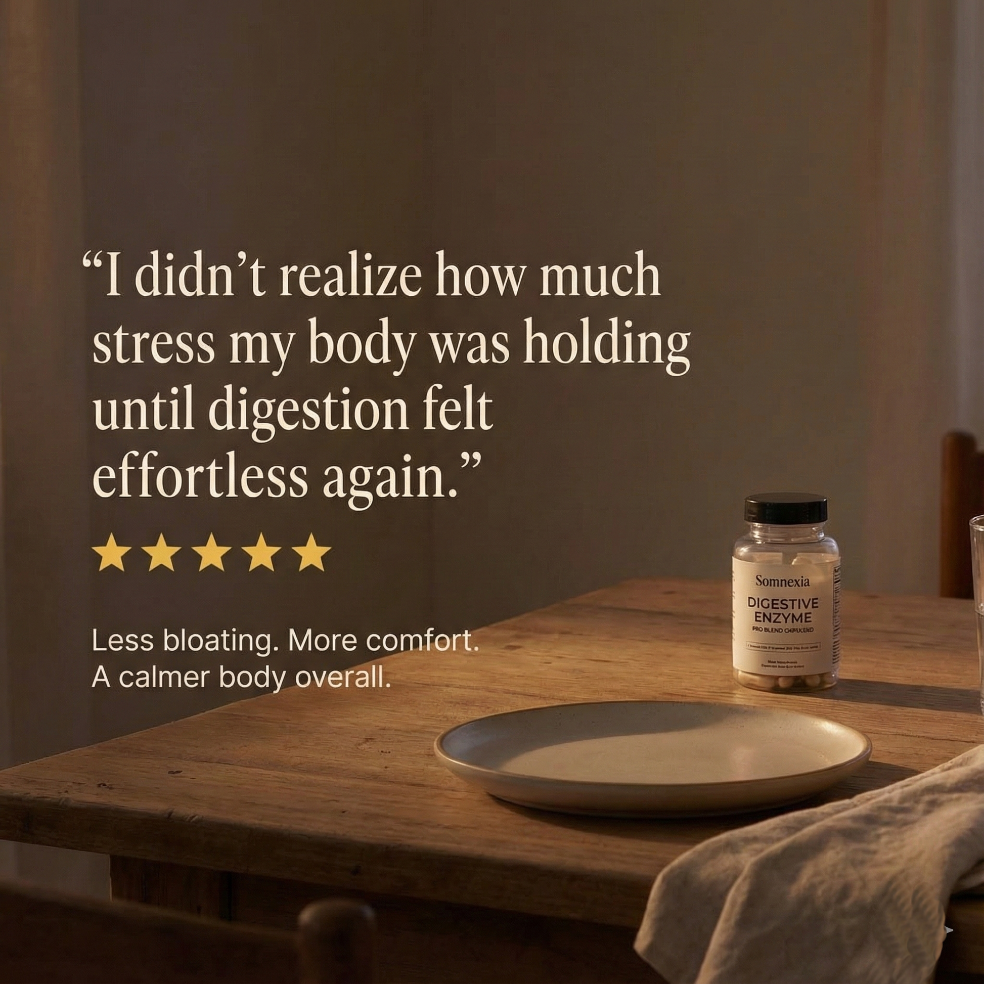 Digestive enzyme supplements help the body break down proteins, lipids, and carbohydrates to support digestion and nutrient absorption, helping promote steady energy and overall vitality. By supporting efficient digestion and nutrient absorption, digestive enzymes can also help reduce the physical stress placed on the body — allowing it to better maintain balance, energy, and resilience throughout the day.